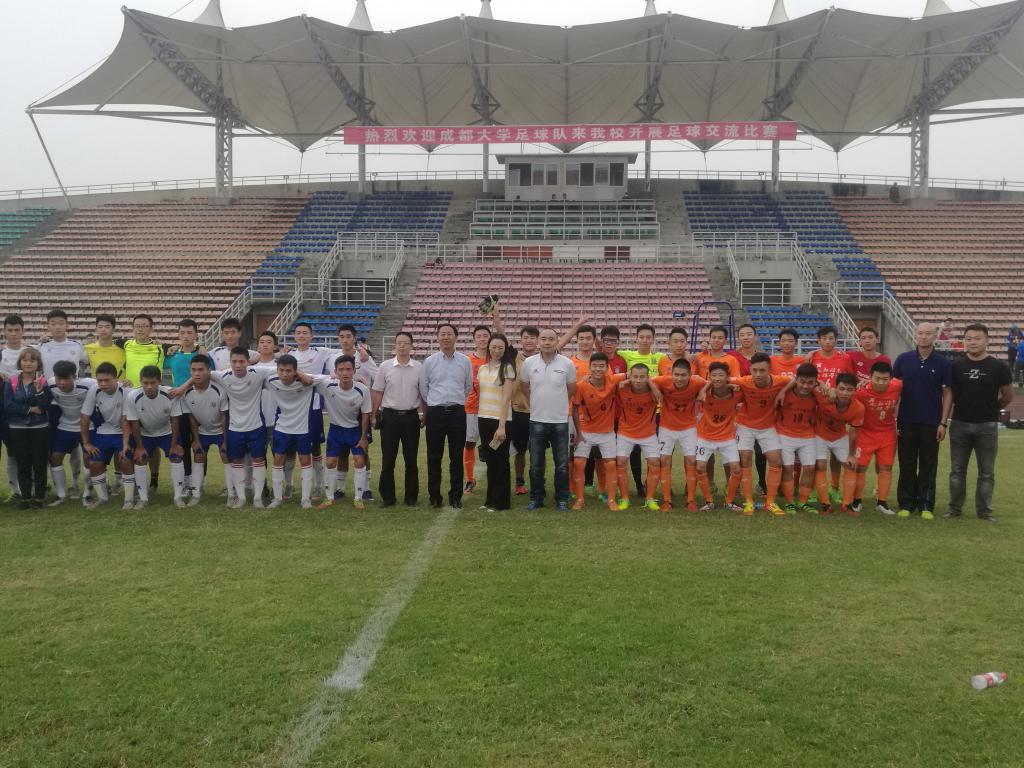 赛后双方教练组、运动员也进行了深入交流。最后成大考察团诚挚邀请我校参加9月28日-30日由中国大学生体育协会足球运动分会和中国足球发展研究中心联合主办、成都大学承办的“全国高校校园足球发展国际论坛”以及随后的“成大杯”足球比赛。我校也承诺将组队参加本次赛事。