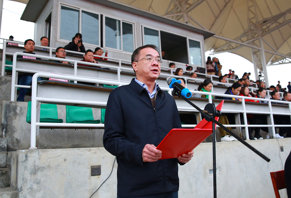 余敏明在开幕式上致辞。他说,发展体育事业是社会主义精神文明建设的一部分,是增强广大师生身体素质的重要环节,学校运动会的举办更是对学校体育工作成果的充分展示以及运动水平和质量的大检阅。他希望大家齐心协力,将本届田径运动会办成文明、团结的体育盛会!并将这种拼搏、进取、协作的体育精神带到今后的学习、工作和生活中,以取得更大的成绩。