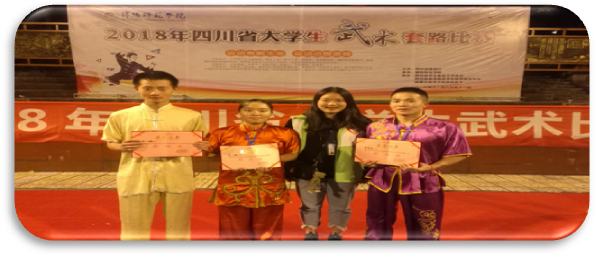 此项比赛在校领导的支持下,部门领导督促监管、武术专项老师专业指导下,历经招募、选拔、制定参赛项目,分别选定电子工程学院李军军、栾奕霖、刘旭阳,原外国语学院现网络安全学院仝一涵等同学,克服困难积极备赛近2个月。各位同学利用课余时间反复训练,坚持枯燥及繁琐的技术动作练习不断提高技术水平。为展现我 “成于大气、信达天下”的校训精神,不断拼搏进取,并连续两年取得女子c组初级长拳第二名、自选拳第三名;女子c组刀术第三名、男子c组刀术第二名;男子c组南棍第三名;男子c组螳螂拳第六名;李军军同学荣获优秀运动称号;仝一涵、栾奕霖同学荣获个人体育道德风尚奖,我校荣获体育道德风尚奖单位。