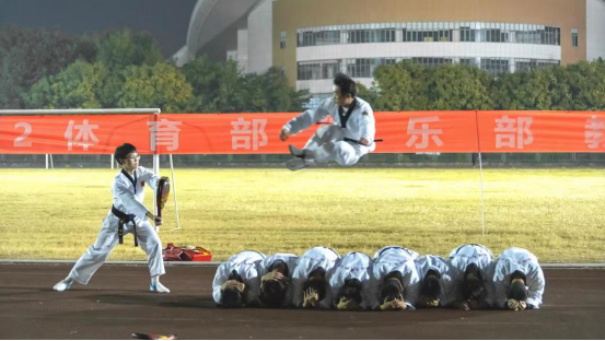 随着音乐的响起,队员们或龙腾虎跃,或静若处子,尽情诠释着跆拳道的魅力。大家动作整齐划一,发声响亮,精力十足,呼之有声的踢腿,体现了跆拳道代表队队员的英姿飒爽。随后是品势与特技展示,刚柔并济、绚丽流畅的腿法,敏捷的身手,大展跆拳道的风采,充分展示我校跆拳道代表队在助力学校健康校园方面积极向上的精神风貌。