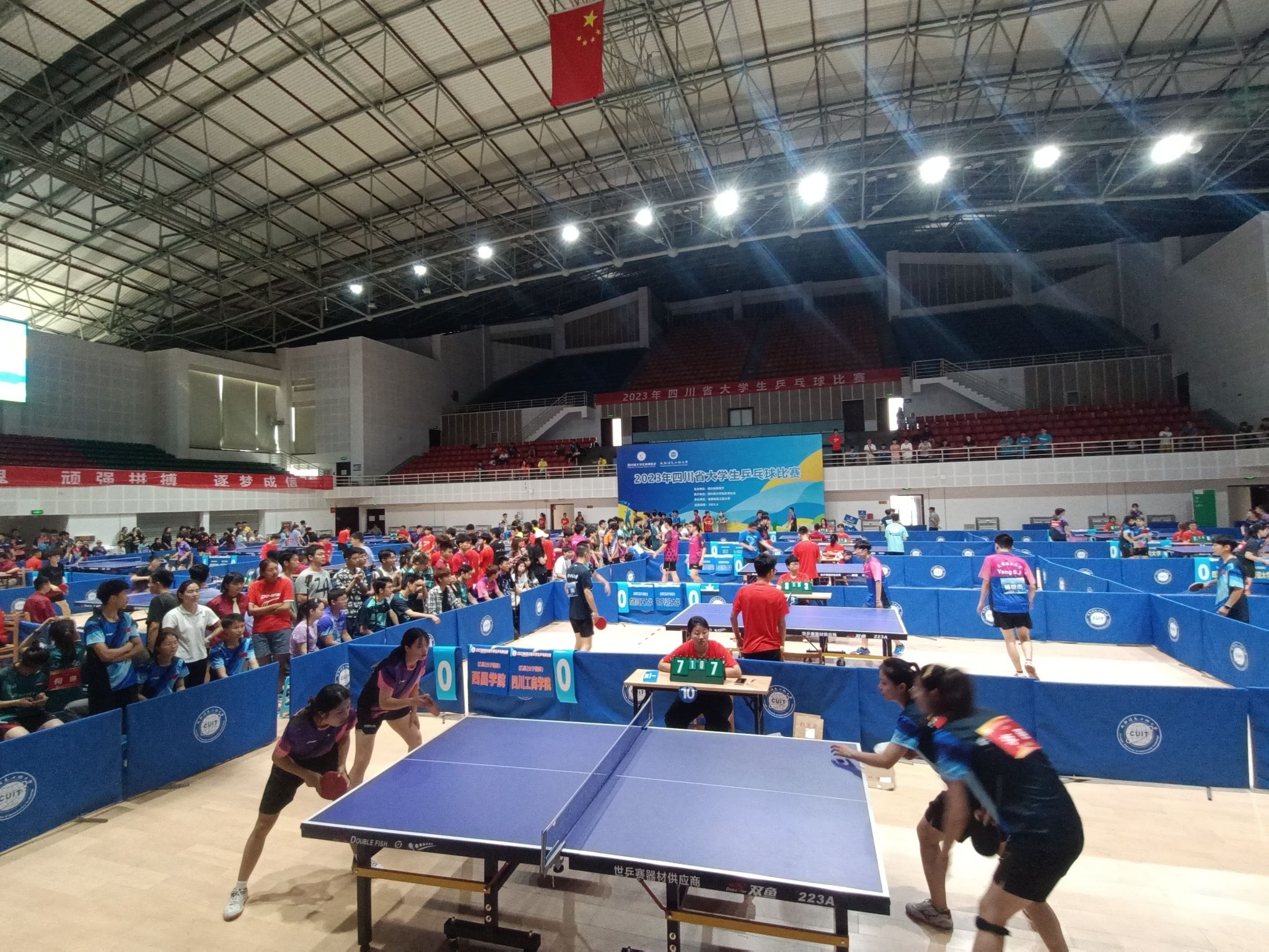 2023年四川省乒乓球比赛于6月9日在我校航空港校区开幕,比赛由四川省教育厅主办、四川大学生体育协会执行、我校承办,是四川省高校乒乓球最高水平和历史最大规模的赛事。本届比赛吸引了来自全省77个高校的102支代表队参与,1000余名运动员、教练员齐聚我校航空港校区,参加高校组、专业组、高水平组、高职高专组4个组别的7个项目。