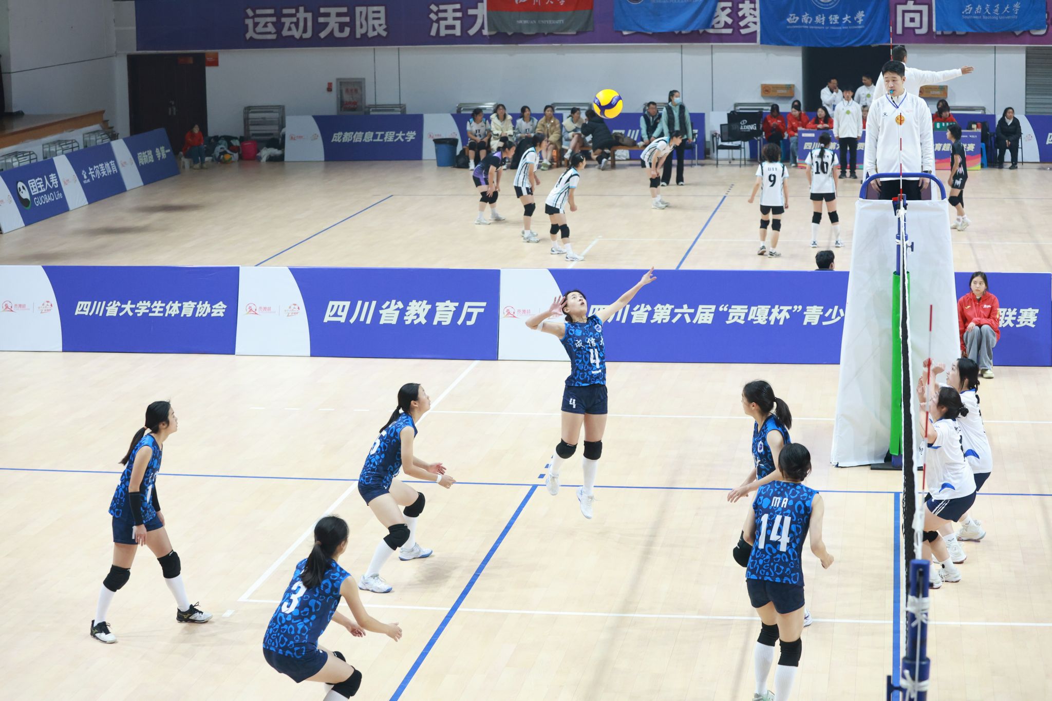 2025年11月29日上午由四川省教育厅、四川省体育局、共青团四川省委主办,四川省大学生体育协会、四川省排球协会执行,bevictor伟德承办的四川省第六届“贡嘎杯”青少年校园体育超级联赛(排球高校女子校园组)开幕式在bevictor伟德体育馆举行。bevictor伟德党委常委、副校长何晋、bevictor伟德bevictor伟德党委书记程艺、赛区管委会主任兼裁判委员王志杰、赛区纪律监督王世伟、四川省大学生体育协会竞训部排球项目负责人沈佳炘、赛区技术委员邹勤、全体裁判员以及各参赛单位领队、教练和运动员出席仪式。